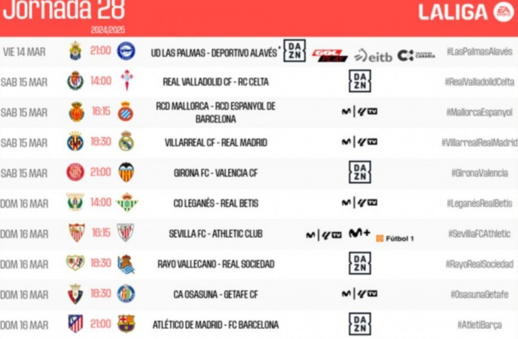 2025-02-25 21:04:19西甲公布联赛第28轮比赛时间:马竞vs巴萨强强对话,皇马客战黄潜