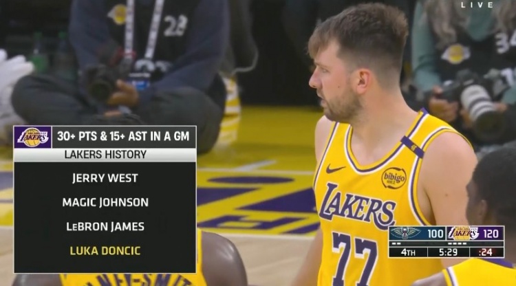 2025-03-05 19:35:37紫金未来!东契奇本场已拿到30+得分&15+助攻 成为湖人队史第4人