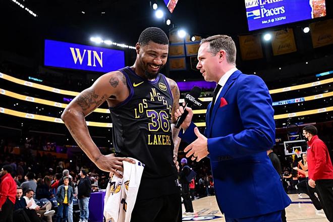 本场比赛中,湖人的先发后场大闸马库斯-斯马特(Marcus Smart)的表现还是相当不错的,他也是起到了自己应该起到的效果。斯马特全场出场29分48秒,投篮9中3,三分线外6中2,罚球2中2,得到了10分3篮板7助攻4抢断3盖帽的全面数据,还有2次犯规,正负值为+13。斯马特在进攻端的手感不能算是特别理想,他的进攻效率和三分命中率并不能算是特别突出的水平,他本应该得到更多的分数。不过斯马特还是展现出了自己在传球和组织方面的才能,他也是缓解了几大巨头在这方面的压力。斯马特在防守端的表现还是能够保持在超高的水平,他也依然是一名极其出色的防守者,他在防守端的存在感确实是相当惊人。