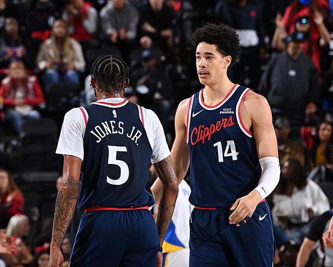 本场比赛中,快船的先发锋线大将小德里克-琼斯(Derrick Jones Jr.)的表现还是相当不错的。小琼斯全场出场25分48秒,投篮9中5,三分线外4中1,罚球2中1,得到了12分2篮板2抢断1盖帽,还有2次失误和3次犯规,正负值为+16。小琼斯在攻防两端真是满满的都是活力,他在进攻端也是展现出了很强的篮下得分能力,他也是抓住了不算太多的机会得到了不少分数,起到了很好的效果。最关键的是,小琼斯在防守端的表现真是太出色了,他超高的积极性和超强的运动能力对于比赛的影响实在是太大了。总体来看,小琼斯也算是在攻防两端起到了很大的作用,他也为球队的这场胜利做出了巨大的贡献。