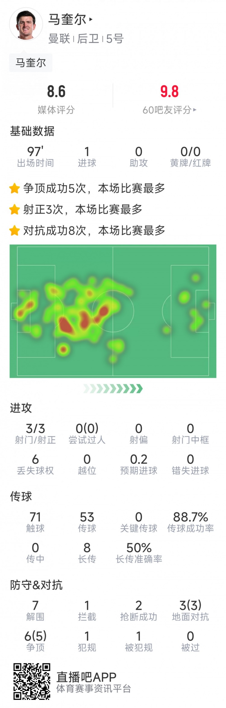 2025-02-27 07:00:41战神!马奎尔本场数据:1粒进球,3次射正,7次解围,2抢断