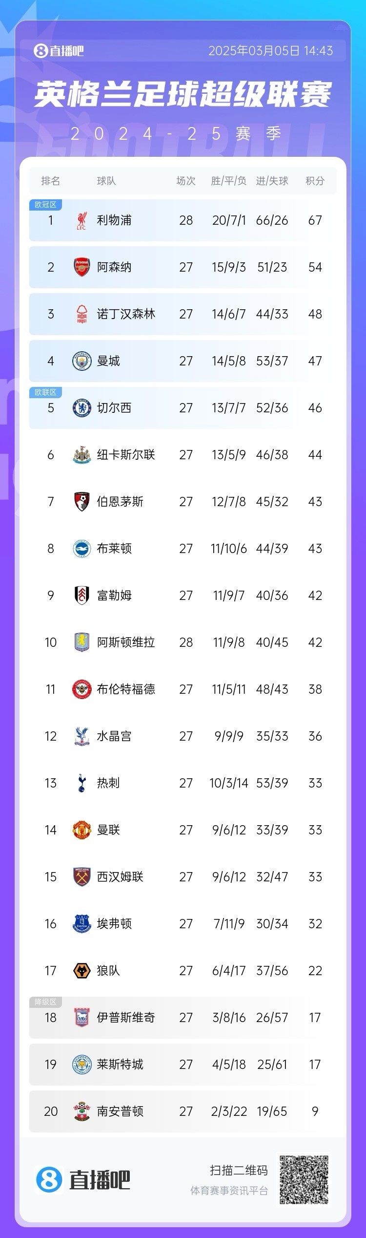 2025-03-05 17:58:57八队仅差6分,史上最激烈欧战资格争夺战?
